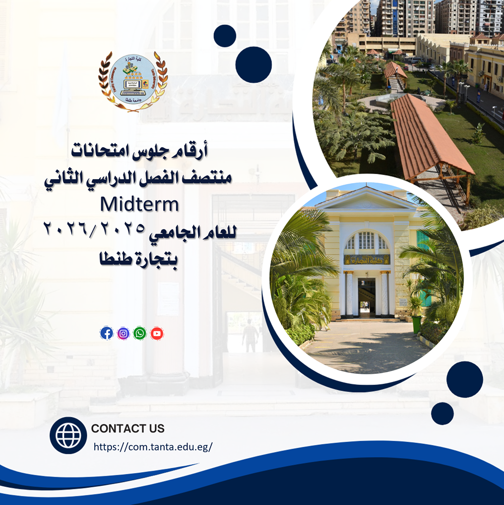 أرقام جلوس امتحانات منتصف الفصل الدراسي الثاني(Midterm)للعام الجامعي ٢٠٢٥ /٢٠٢٦ بتجارة طنطا