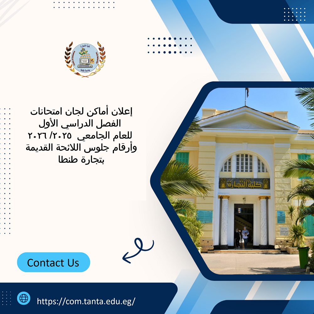 إعلان أماكن لجان امتحانات الفصل الدراسي الأول للعام الجامعي ٢٠٢٥ /٢٠٢٦ وأرقام جلوس اللائحة القديمة بتجارة طنطا