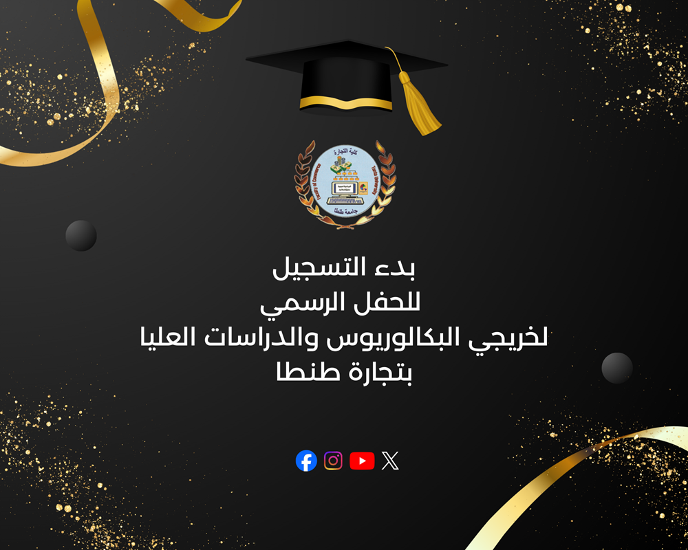 تعلن كلية التجارة جامعة طنطا عن فتح باب التسجيل للمشاركة في "حفل التخرج الرسمي" لخريجي الكلية من حملة البكالوريوس، وكذلك الحاصلين على الدراسات العليا (الأكاديمية والمهنية)، في احتفالية كبرى تليق بأبناء الكلية العريقة.