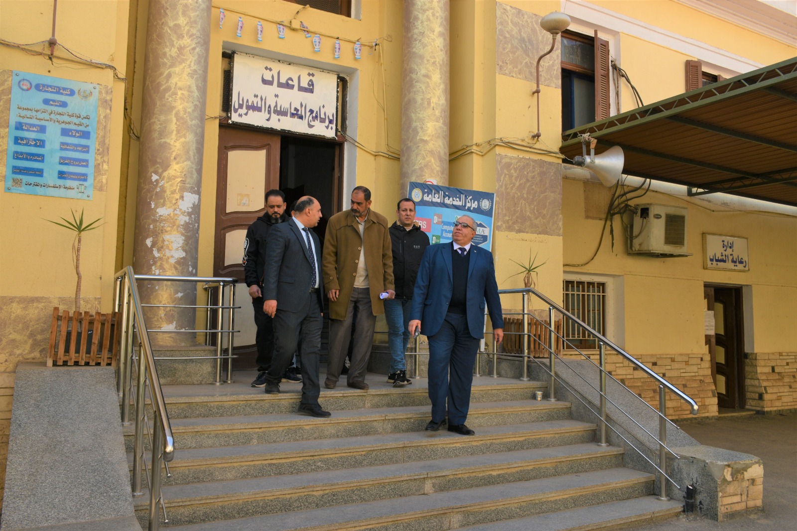 أجرى الأستاذ الدكتور ياسر الجرف، عميد كلية التجارة جامعة طنطا، جولة تفقدية لمتابعة آخر مستجدات أعمال التطوير والصيانة بالمبنى الأوسط، رافق سيادته خلال الجولة الدكتور محمود ادهم ،أمين عام الكلية، وا/محمد فوده، رئيس قسم الشئون الهندسية، والعميد هشام نبوي ،مدير أمن الكلية، وا/ احمد جميل ،مدير مكتب امين عام الكلية وا/ صبحي عبدالغني رئيس قسم الشئون العامة.