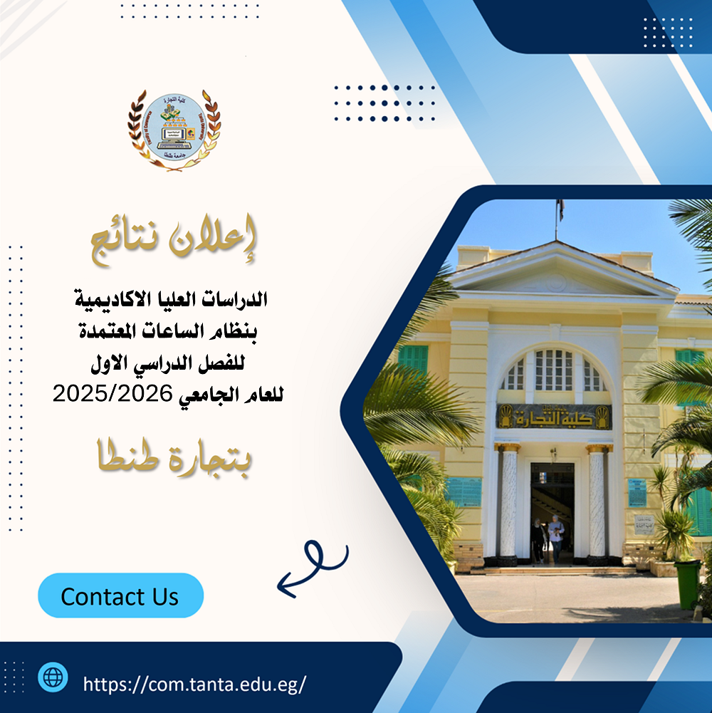 إعلان نتائج الدراسات العليا المهنية بنظام الساعات المعتمدة للفصل الدراسي الاول للعام الجامعي ٢٠٢٥ /٢٠٢٦ بتجارة طنطا