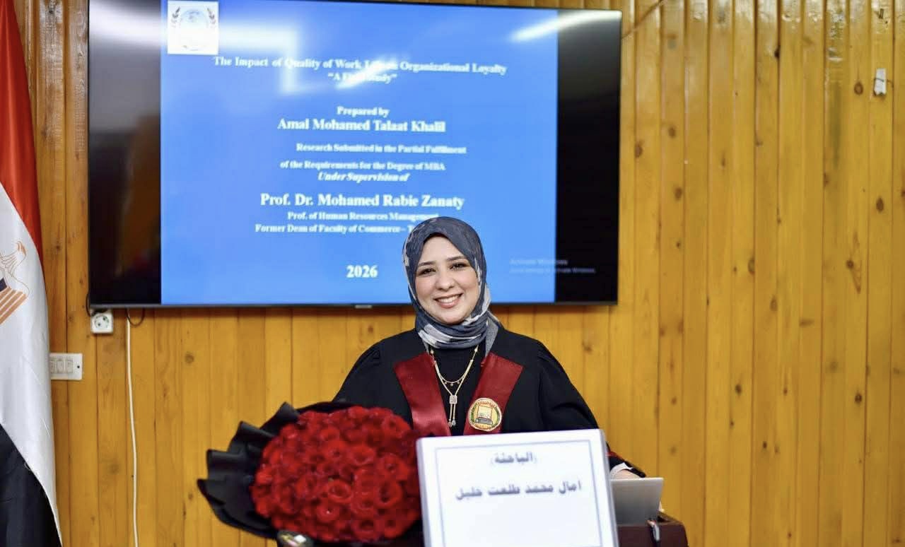 شهدت كلية التجارة جامعة طنطا مناقشة مشروع البحث للماجستير المهني فى إدارة الأعمال تخصص (ادارة الموارد البشرية لغة ) للباحث : امال محمد طلعت خليل